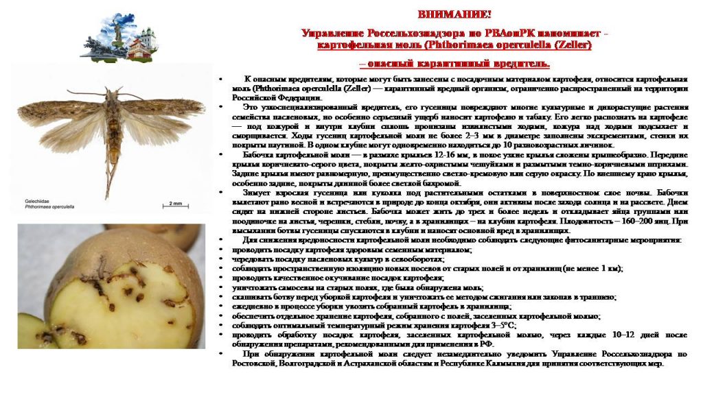 Управление Россельхознадзора по РВАоиРК напоминает — картофельная моль (Phthorimaea operculella (Zeller)